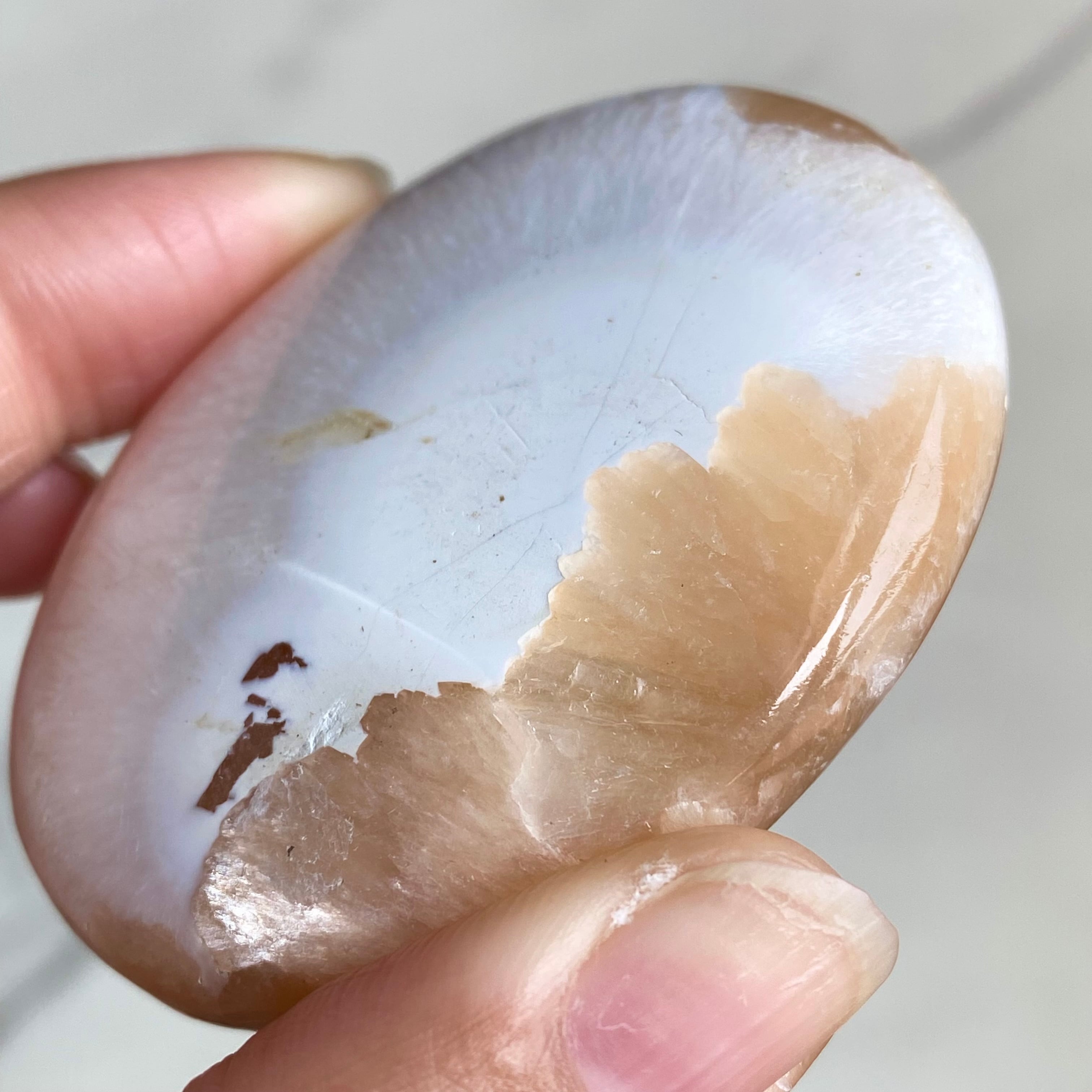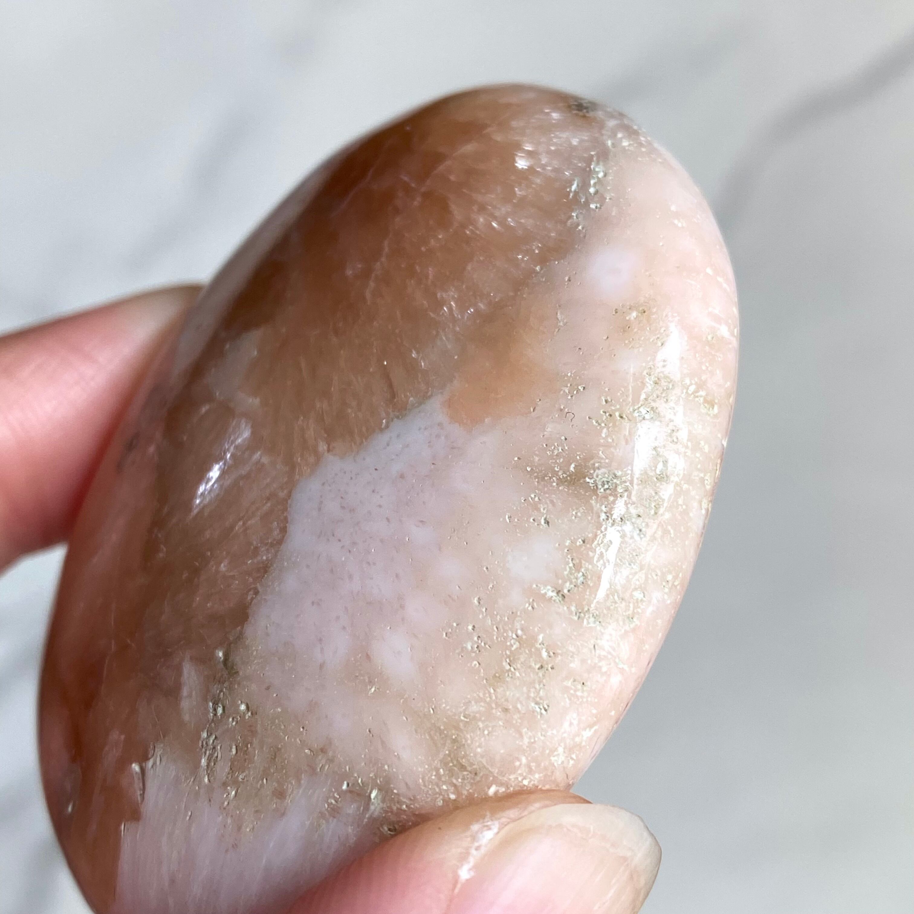 ピンクやオレンジベージュが混ざり合い、優しく柔らかな雰囲気の石です♬