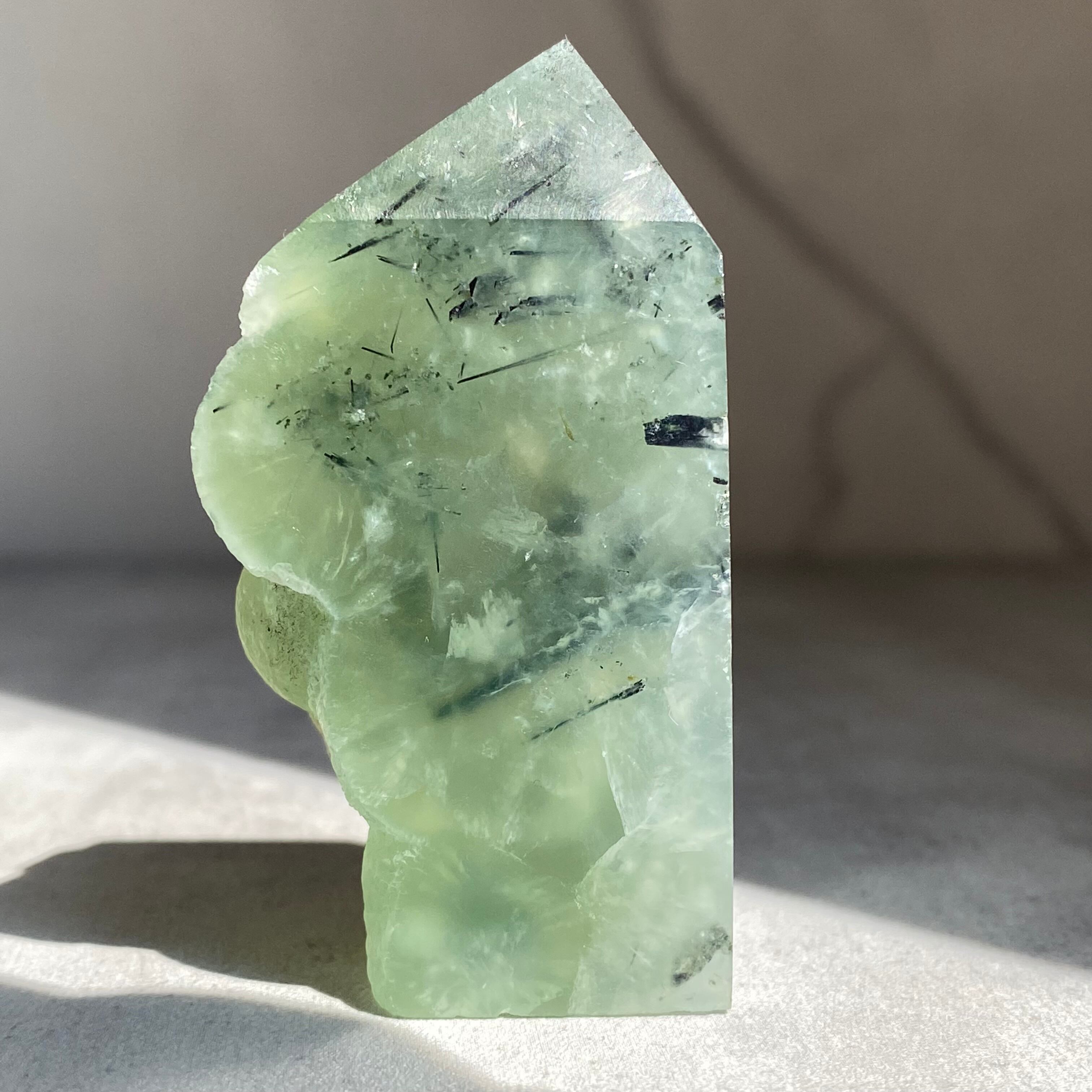 やわらかなアップルグリーンに、黒〜濃緑のエピドートが舞い込む特別な表情が素敵なタワー✳︎