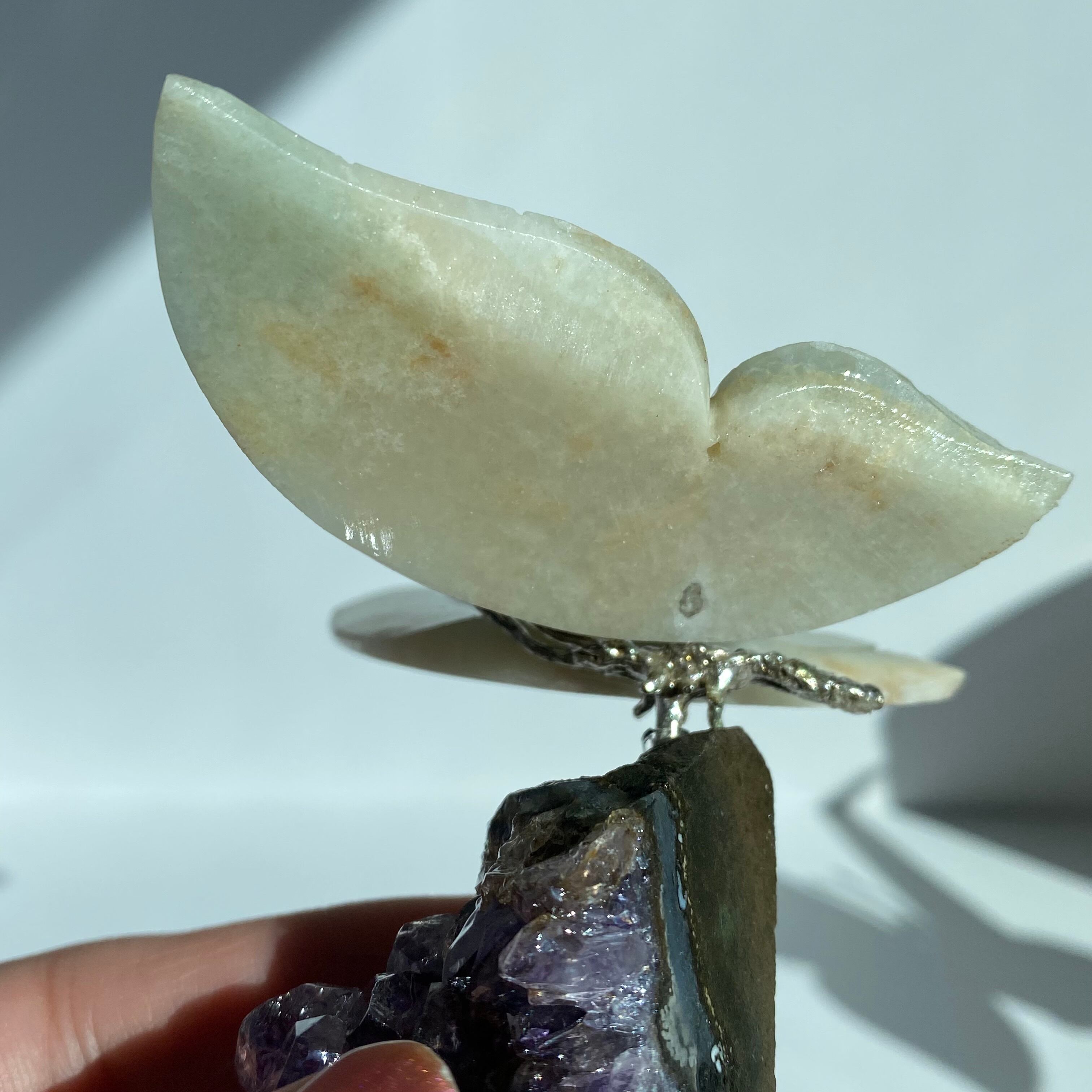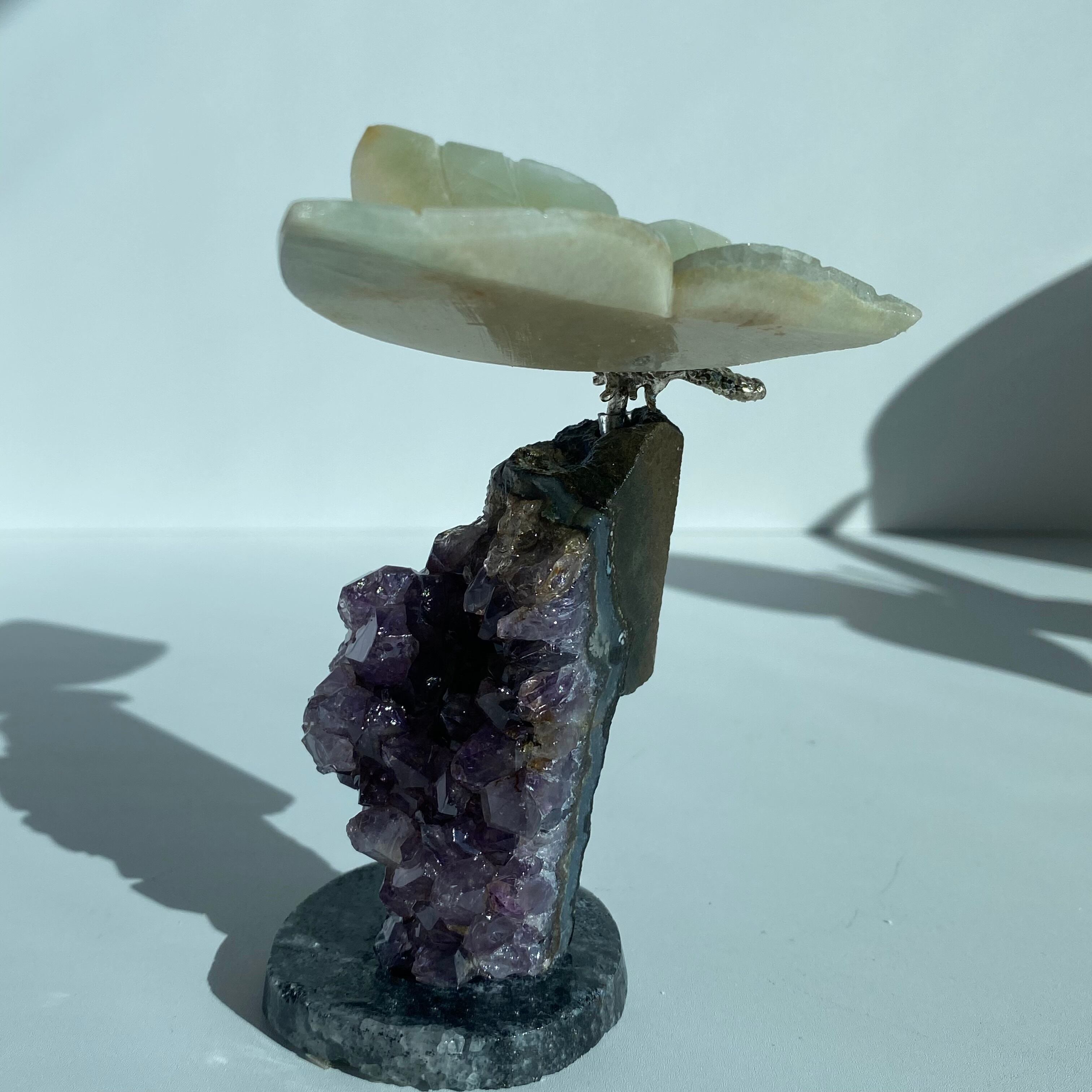 ◎ 蝶々(オニキス)と台座(アメジスト)の接続部分は固定されていません。