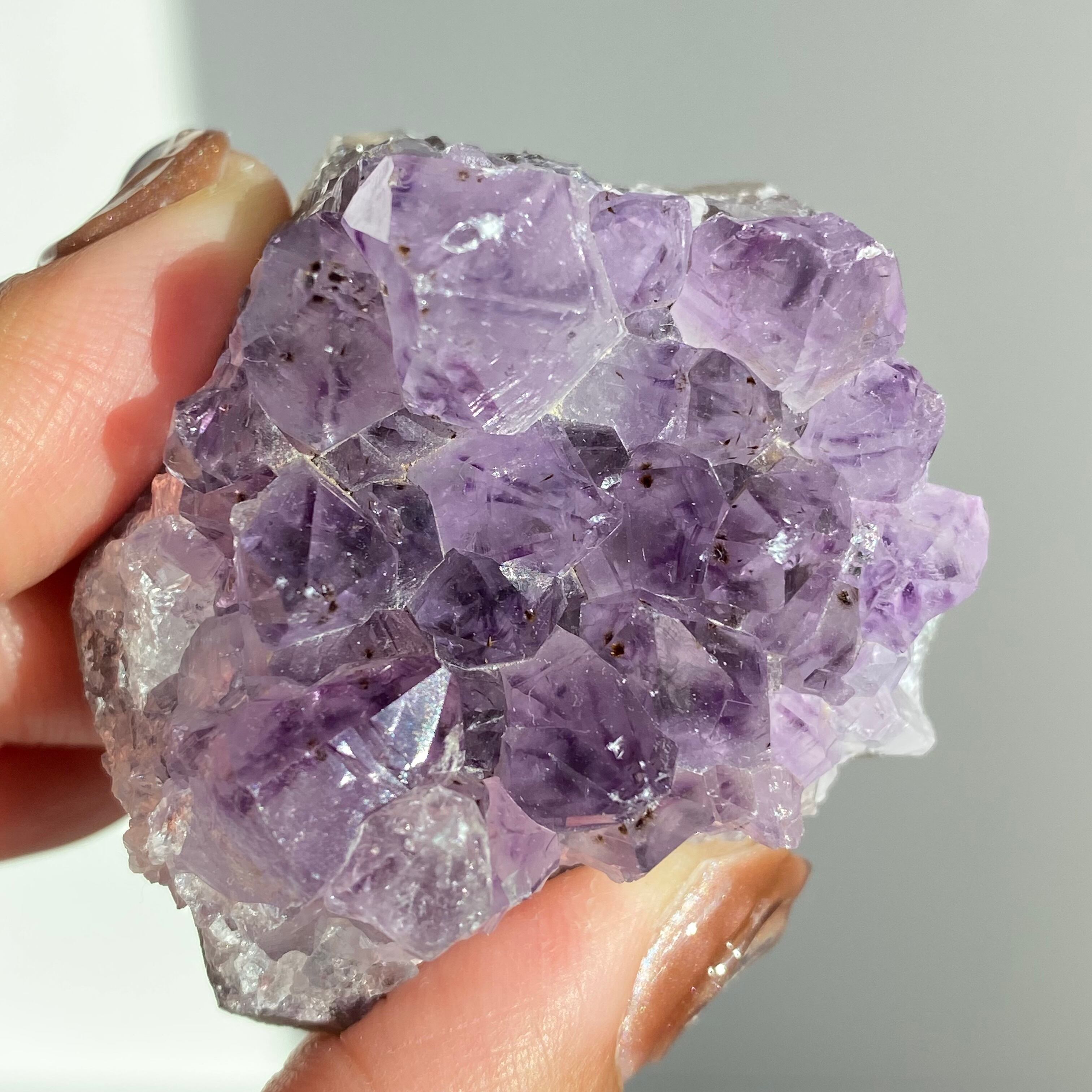 透明感のある結晶がぎゅっと集まり、まるで紫の光をそのまま閉じ込めたような美しさです。