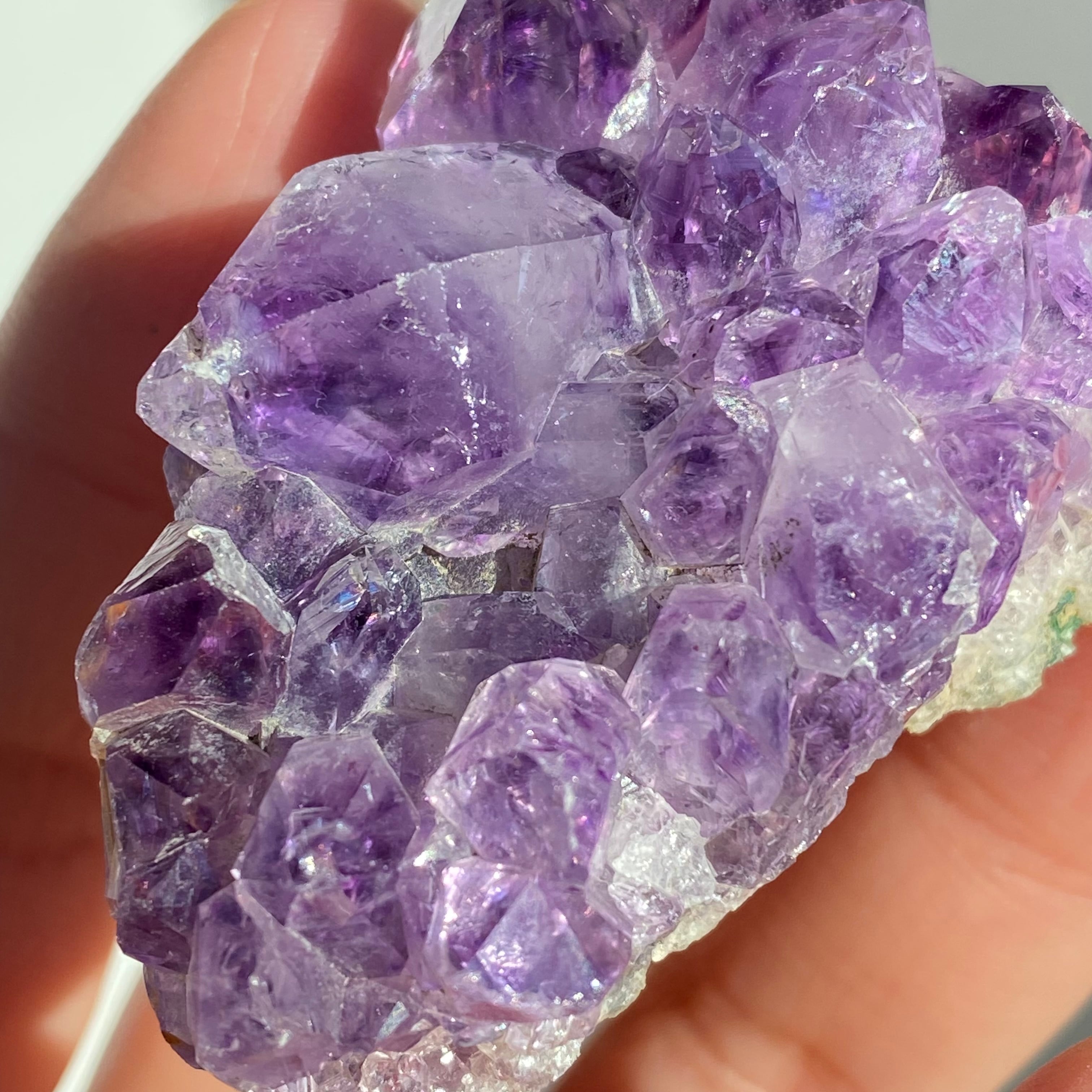 透明感のある結晶がぎゅっと集まり、まるで紫の光をそのまま閉じ込めたような美しさです。