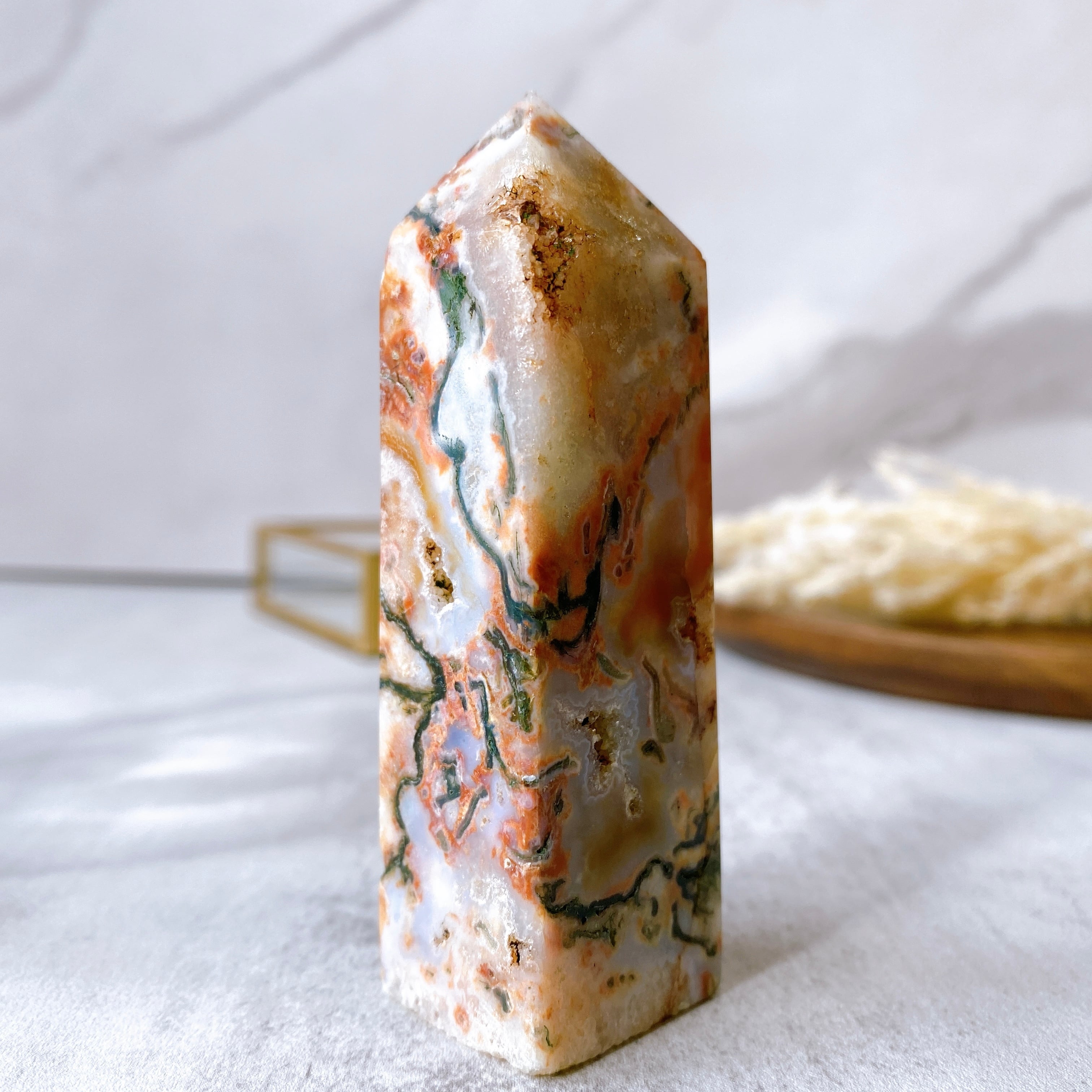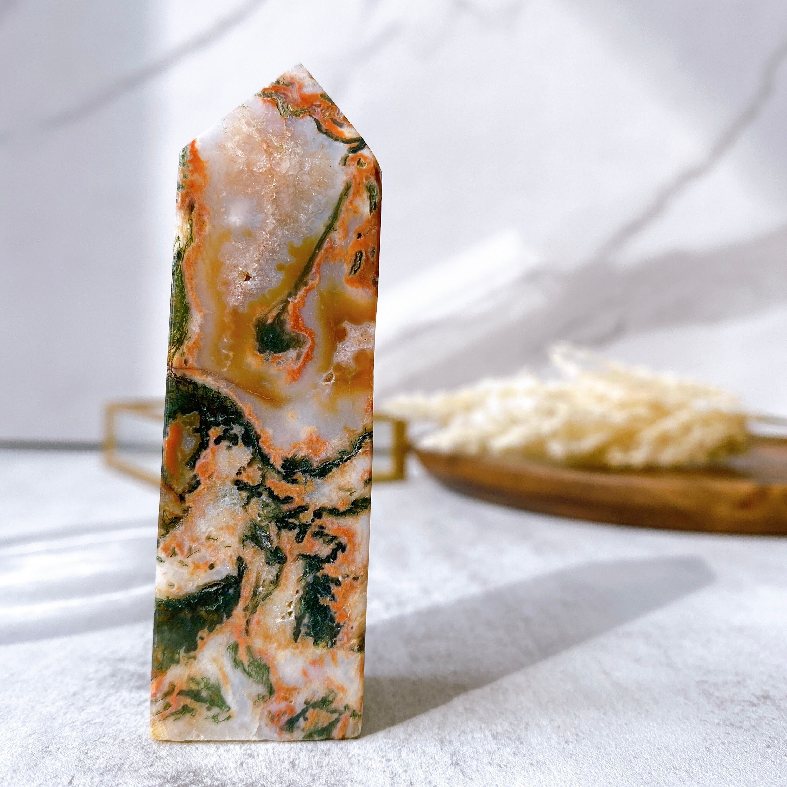 カーネリアン モスアゲート タワー 3◆Carnelian mossagate tower◆ 紅玉髄 苔瑪瑙 天然石 鉱物 パワーストーン