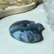 モスアゲートは、瑪瑙の中に緑色や赤色、黒色などの内包物が入り、それが苔や木の枝のような模様に見えるのが特徴の石です。