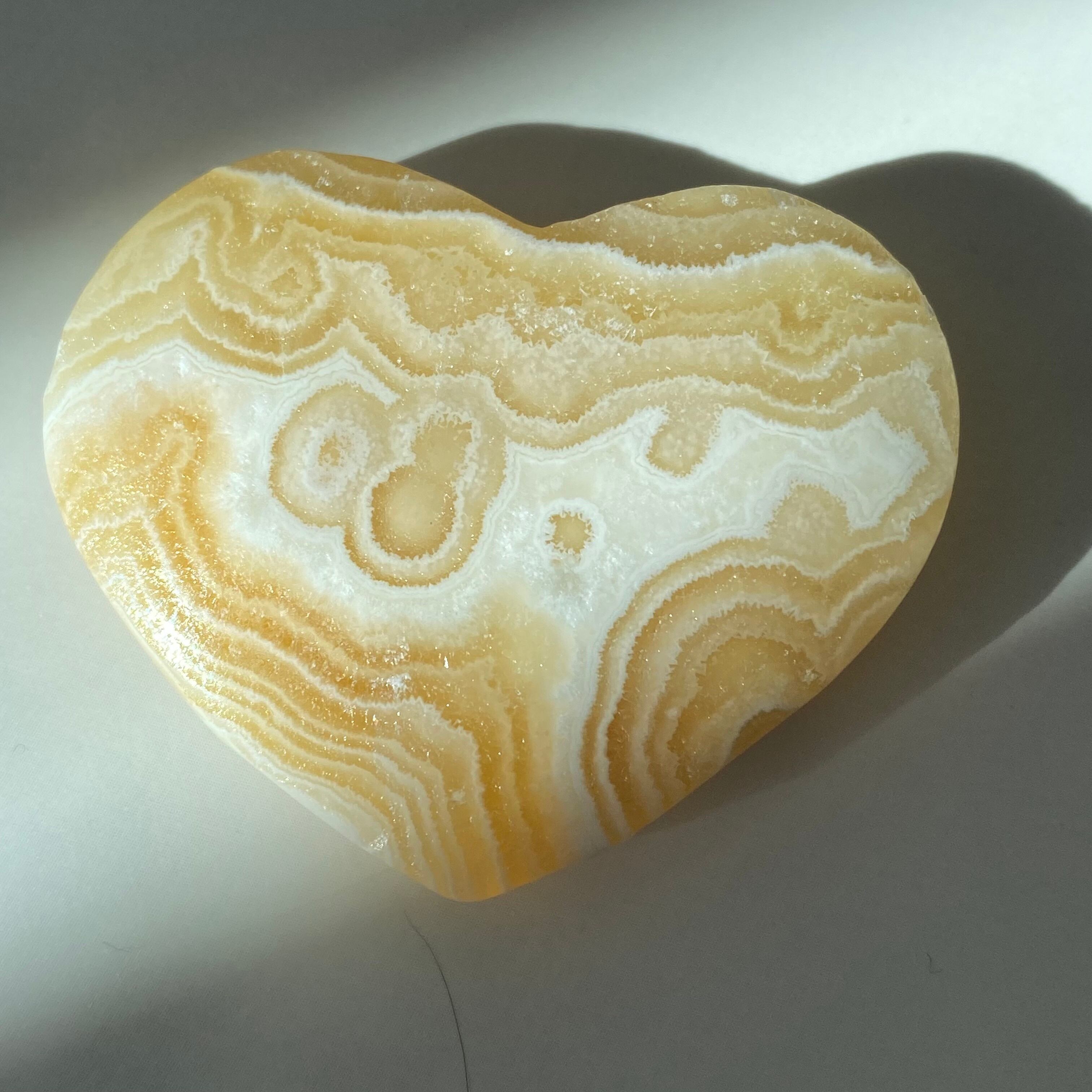 金運✳︎幸運✳︎メキシコ産《イエローカルサイト ハート》天然石 鉱物 パワーストーン 822