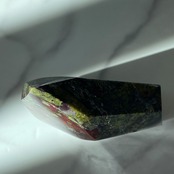 赤色は酸化鉄、緑色はエピドートによって構成された、龍の鱗のようなグリーンカラーのベースに龍の血を思わせる鮮烈な赤色が混じったジャスパーです。