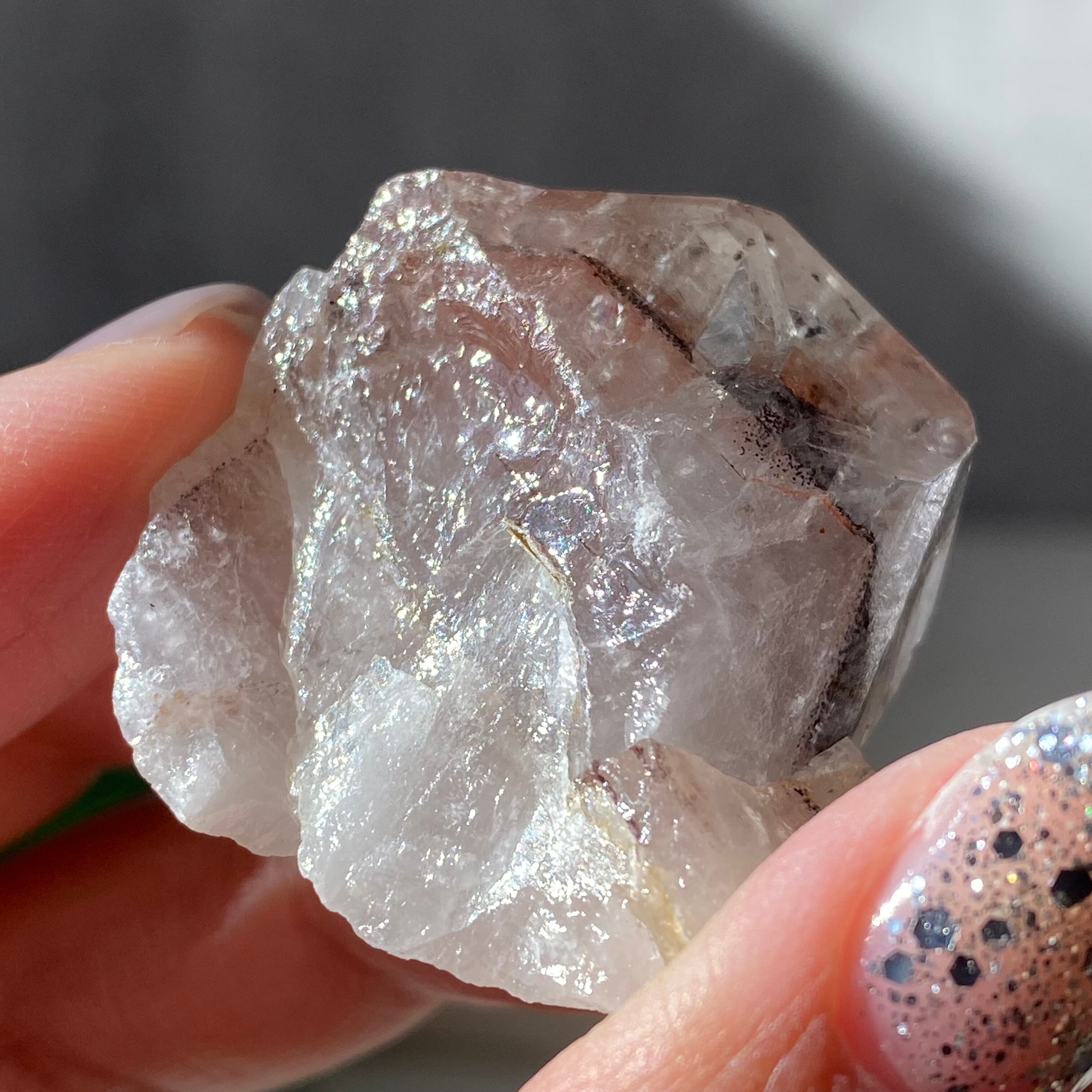 透明感のあるマットな水晶の中にレッドクォーツのファントムが見られます✳︎