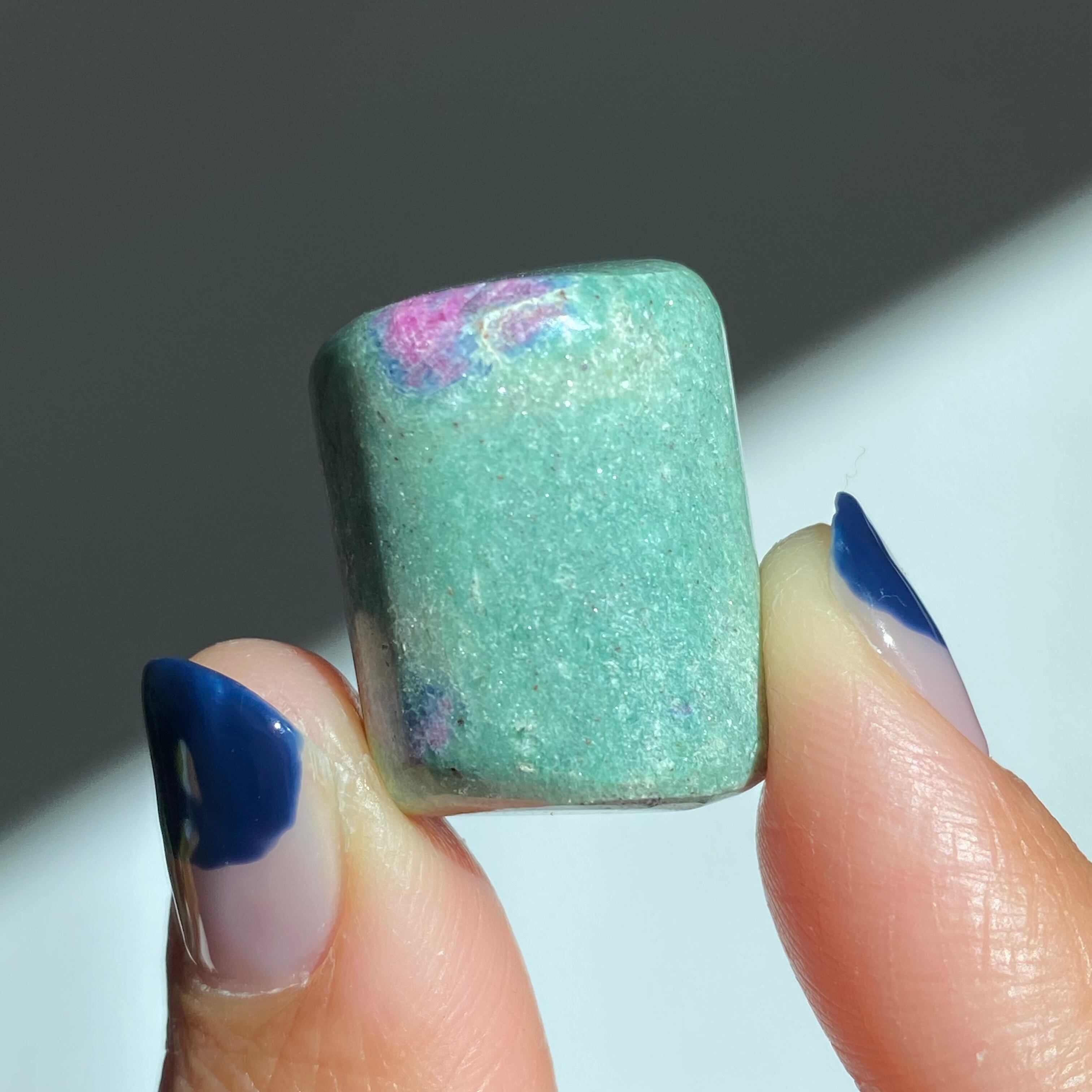 世界最強とされるダイヤモンドに次に硬い鉱物とされるコランダムと、癒しの効果が高いフックサイトの共生鉱物です✳︎