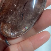 水晶の成長過程で金属成分が含まれた水分が染み込み、時間をかけて水分だけが蒸発し金属成分が残った為に赤みを帯びた色合いの見える水晶です。